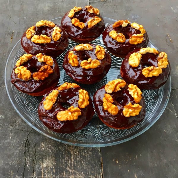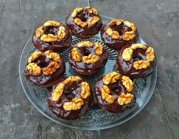 - A sütőt előmelegítjük 175 fokra . A fánksütő formát kikenjük vajjal majd adagolhatjuk is bele . 20 -25 percig sütjük és végén étcsokis bevonattal valamint dióval tálaljuk .
