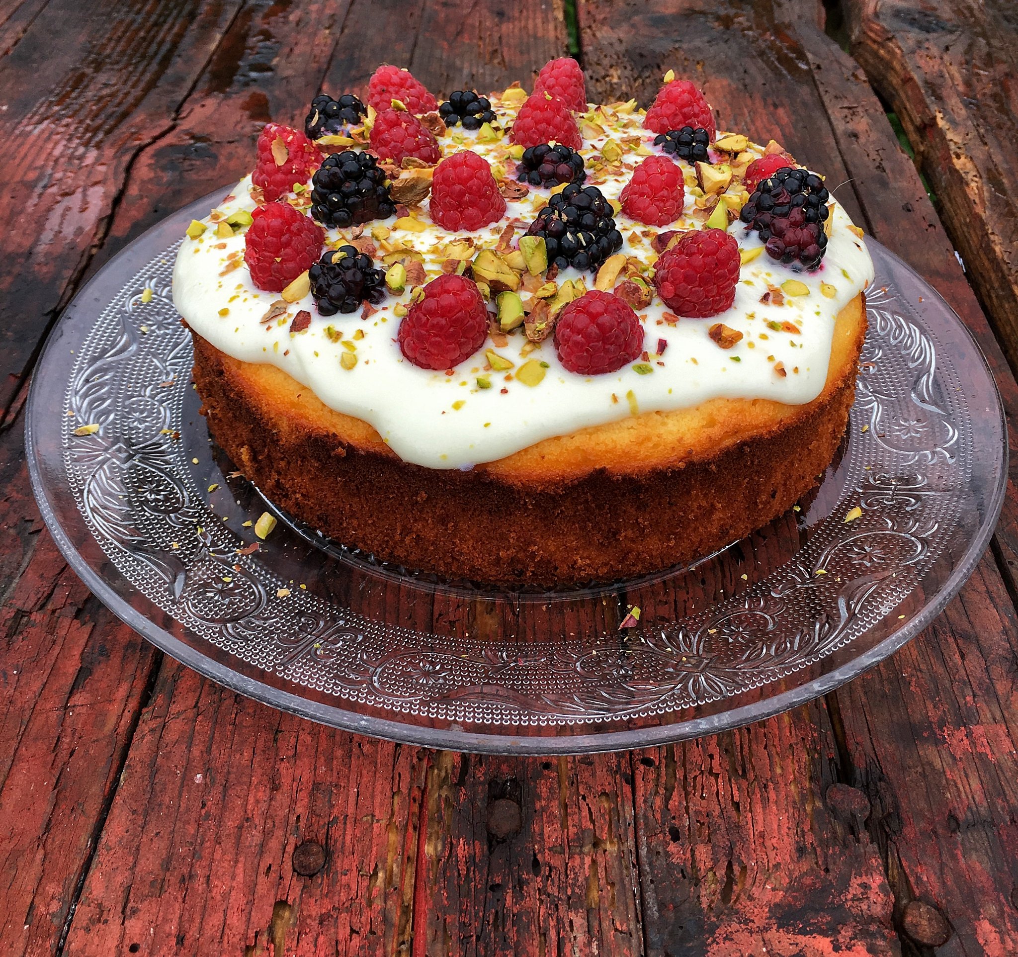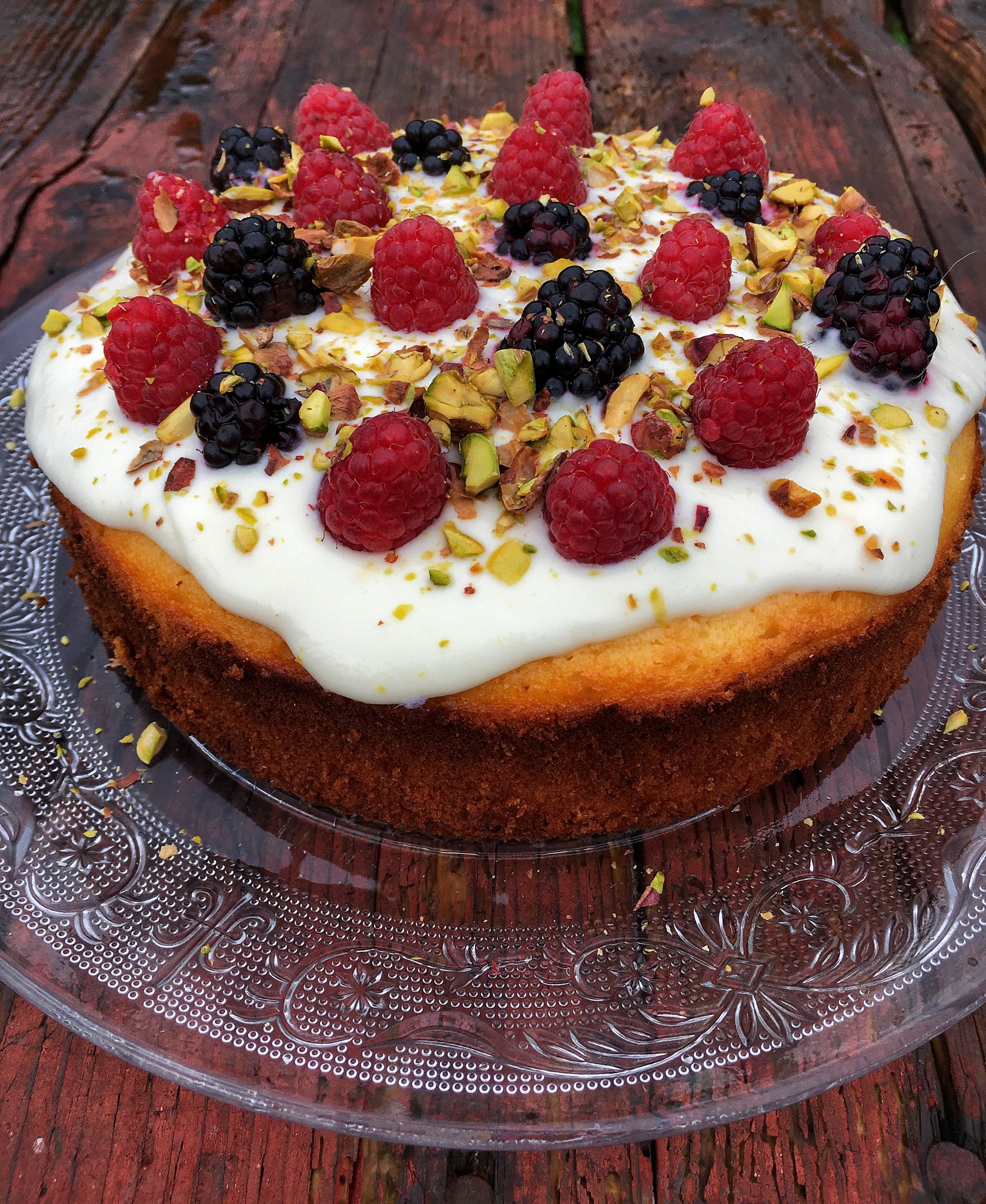 - Ha kihűlt a piskótánk akkor megpakoljuk a krémmel és gyümölcsökkel , valamint pisztáciával díszítjük .