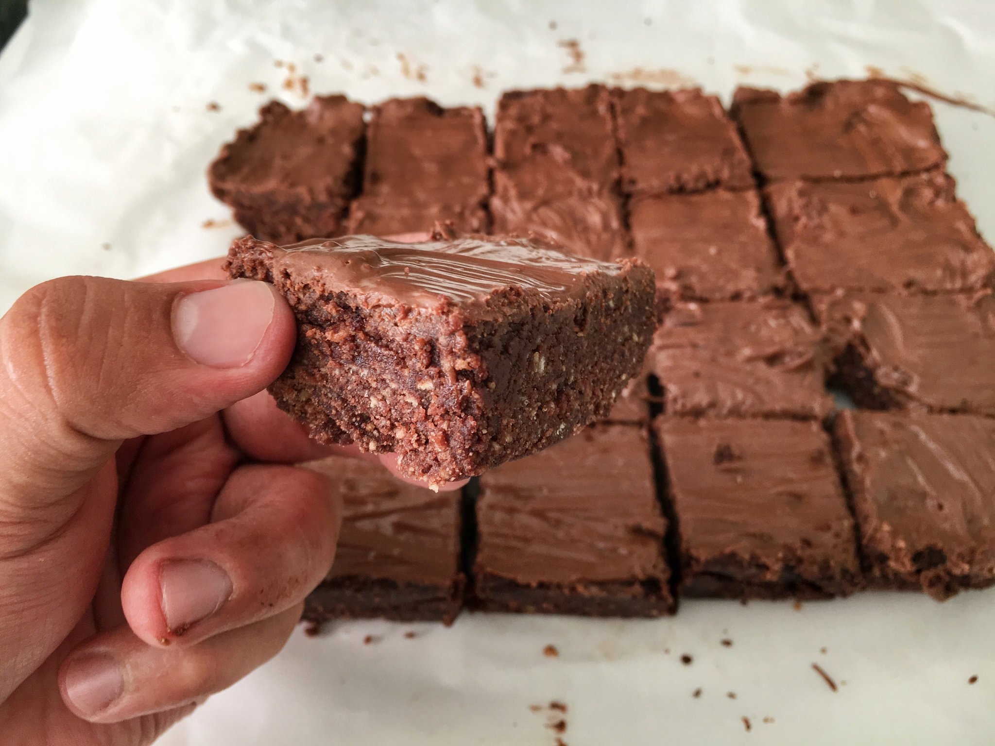 - Ha összeállt a massza akkor lenyomkodjuk , valamint leöntjük az olvasztott csokival .