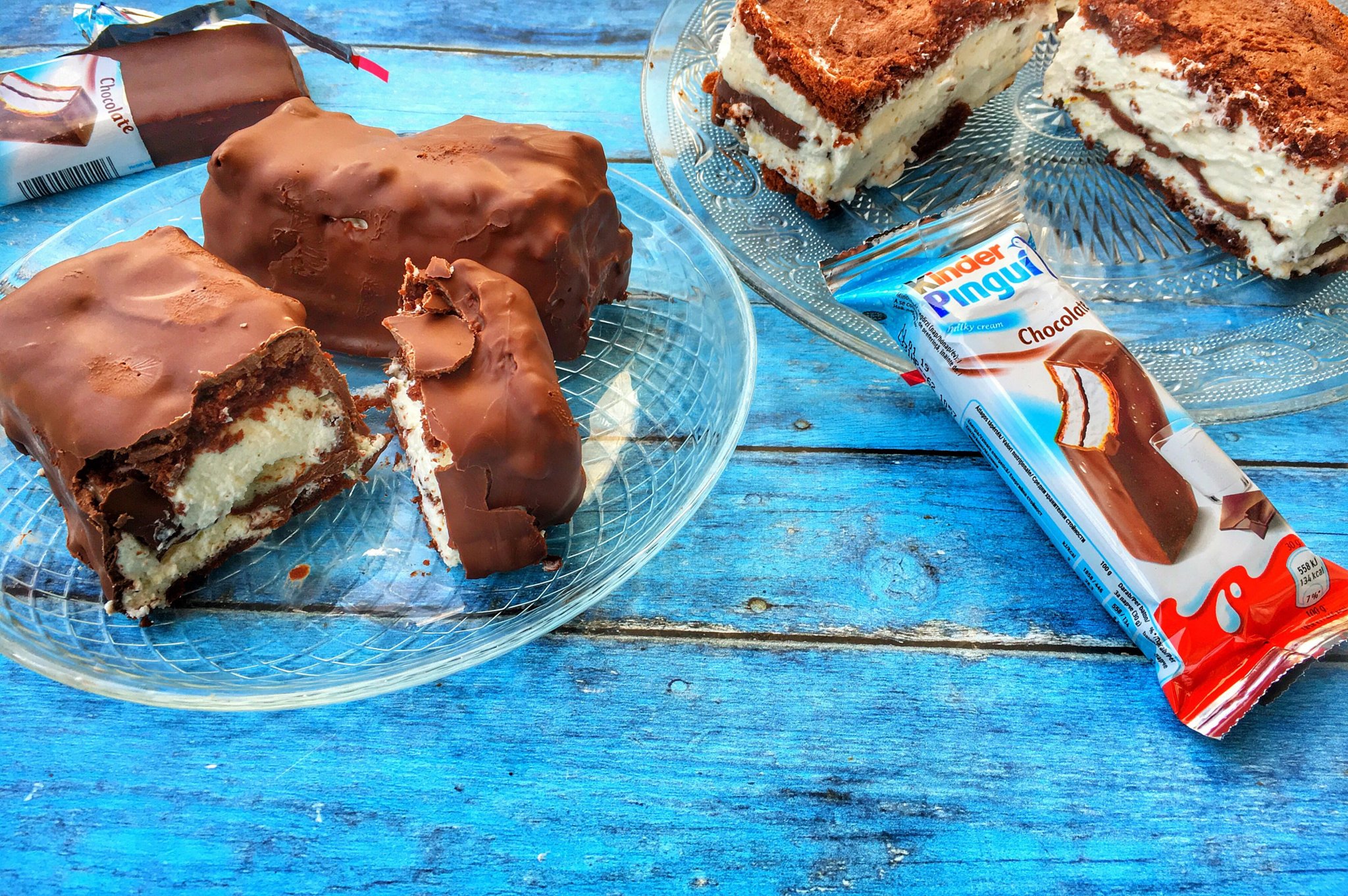 Új év új lehetőségek . De az indíttatásom , hogy a csokis desszerteket átformáljak valami süti alakba , nem változott . A Kinder Pingui a következő áldozatom . Komoly érzelmi szálak fűznek hozzá , mivel gyerekkoromban állandóan ilyet hozott nekem apum Németországból . 4 es vagy 6 os pakkban lehet kapni , én magam sem tudom , de a lényeg , hogy egy csomag simán lecsúszott nekem belőle úgy 20 perc alatt . A szüleim szinte már elzárták tőlem , és mondhatom , teljes joggal . De most végre megalkottam a saját bűnös élvezetemet és mondhatom , hogy ez talán még jobb mint az eredeti . Na de lássuk is a receptet !!