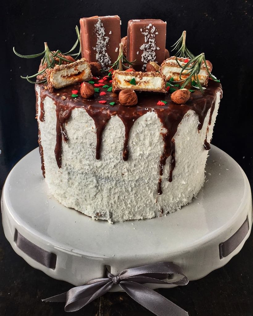 Szerintem senkinek sem kell bemutatni a mára már ikonikussá vált tortámat . Mióta feltöltöttem az első variációját , azóta rengeteg apróságon változtattam , mint például azon , hogy mostanában már különböző gyümölcsöket is raktam rá , vagy hogy került rá több különböző dekorációs elem is , kekszek , fűszernövények …..stb . Azonban mint mindennek , egy tortának is muszáj időnként megújulni , éppen ezért most elhoztam nektek a Kinder Maxi King tortám leegyszerűsített verzióját . Az alap összetevők megmaradtak , azonban egy kicsit másabb formában kerültek a tortába . A karamellszósz például egy karamell puding formájában láthatjátok viszont a tortában ,mivel rengeteg üzenetet kaptam ezzel kapcsolatban , hogy egy kissé nehézkes a tökéletes karamellszósz megalkotása , és ebben teljesen egyetértek veletek . Nekem sincs mindig kedvem a tűzhely fölött állni és várni , mikor olvad fel a cukor , ha pedig egy pillanatra elfordulok már leéget , szóval kész idegbaj . Viszont szeretek kísérletezni , és olyan variánsokat keresni ami sokkal egyszerűbbé teszik egy torta vagy bármilyen másik süti elkészítését , mivel az sem jó ha a sütésre egy fárasztó és idegörlő tevékenységként gondolunk . Az egyszerűség nem mindig jelent minimalista ízeket , csak meg kell találni azt a bizonyos aranyközéputat . Remélem megengeditek nekem ezt a kis nosztalgiázást , mivel most egy kicsit felelevenítem majd a korábbi műveimet , de az első képen látható torta lesz a fő témánk , ő az újonc .
