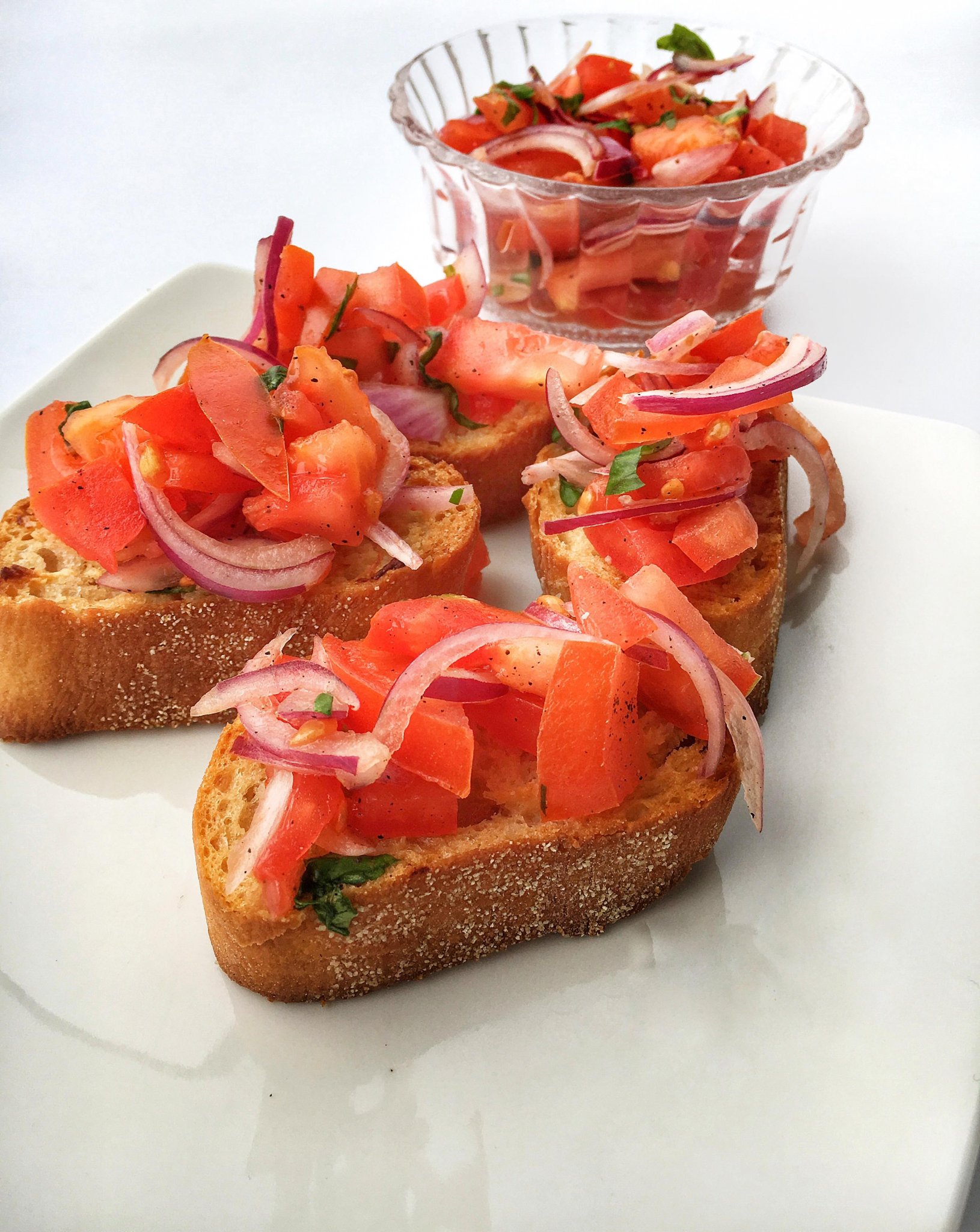 Az Olasz konyha egyik klasszikusát hoztam el most nektek , ami a Bruschetta . Tavaly kezdtem el vele kísérletezgetni , variálni az ízeket és mostanában ráakadtam a számomra tökéletes verzióra . Egy falat belőle és máris az Olasz tengerparton érzem magam , szinte átadja nekem az Olaszokra jellemző nyugalmat , és életérzést . Gyönyörű színek játéka, ami már már a nyár érzetét hozza el nekünk . Én általában akkor készítem el otthon ha nagyon nincs kedvem valami bonyolult ételbe belekezdeni , valamint ha egy kis nyarat akarok csempészni a lakásba .