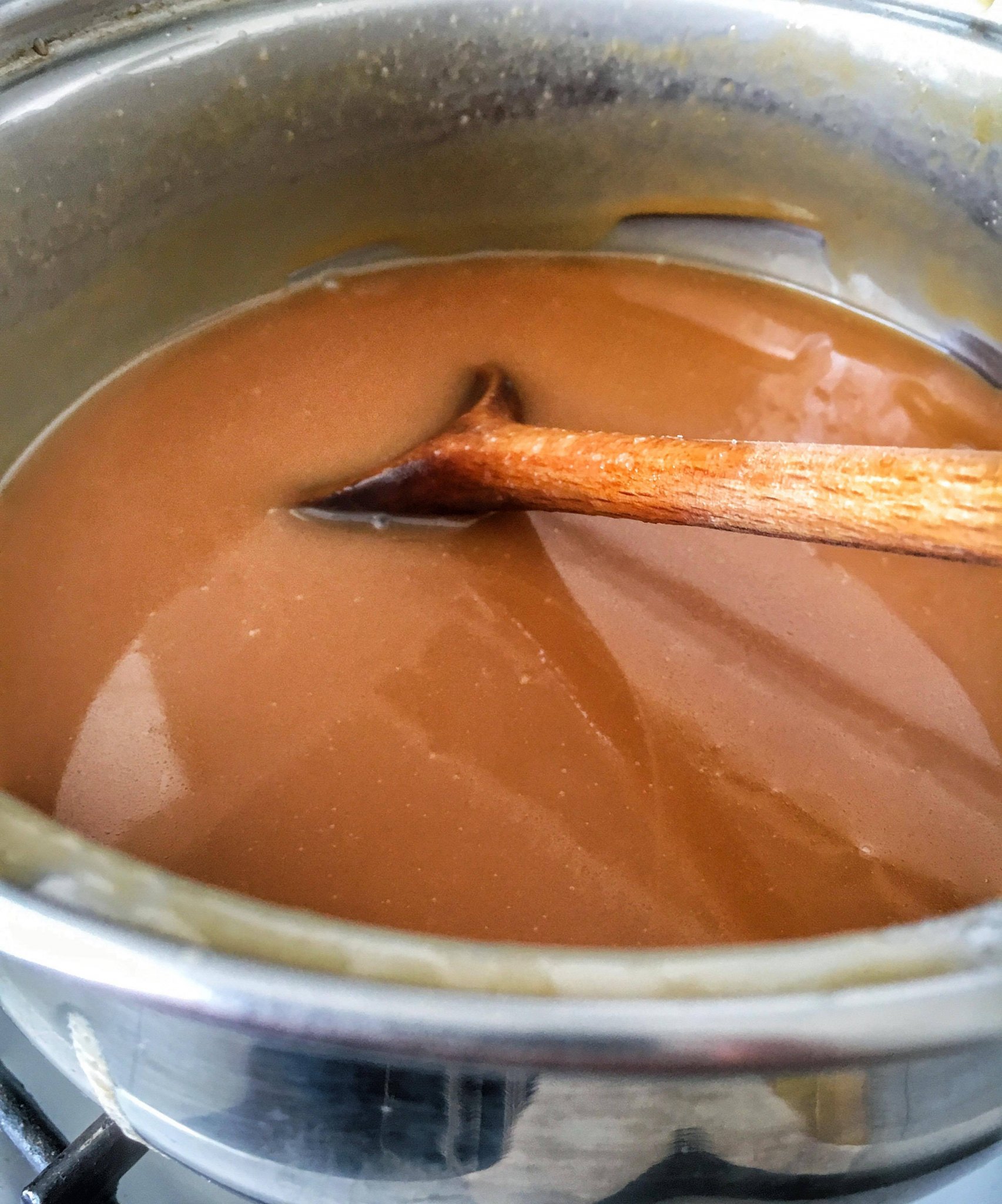 Mióta megalkottam a Kinder Maxi King tortámat, azóta kapom az üzeneteket , hogy segítsek nektek a karamell elkészítésében mert komplikált, fokozott figyelmet igényel és egyszerűen fárasztó . Igen sajnos ez így van és elismerem nekem sincs mindig kedvem saját szószt készíteni ,így hát gyakran használok bolti karamellszószt de olykor olykor ráveszem magam . Sokáig kísérleteztem a tökéletes verzióval és úgy érzem most végre megtaláltam . Ne egy hosszadalmas és bonyolult folyamatot képzeljetek el , hanem inkább egy lustálkodós , lazítós karamell készítést . Az egész alapja egy cukorszirup , amit körülbelül 10 percig főzünk alacsony lángon , utána pedig fellazítjuk tejszínnel és vajjal . Tudom , nem ettől megy majd lejjebb a nadrágméretünk , de néha muszáj engednünk a csábításoknak . Ez az alaprecept , de alul még adok néhány instrukciót , hogyan turbózzátok fel a karamellszószotokat .